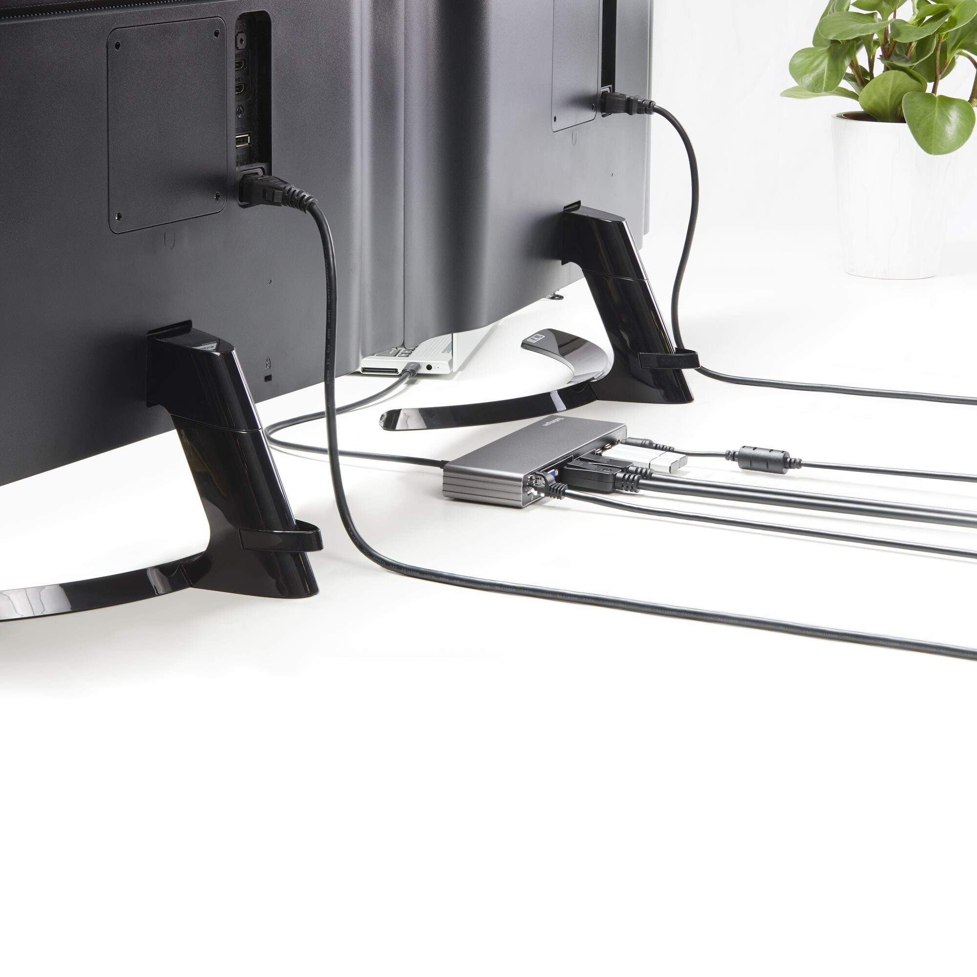 • FLEXIBLE MONITOR OUTPUTS: Connect up to two external monitors for up to dual 4K video with any combination of 2x DP (4K 60Hz), 1x HDMI (4K 60Hz) or VGA (1080p 60Hz); Video output utilizes direct GPU performance with no software or compression
