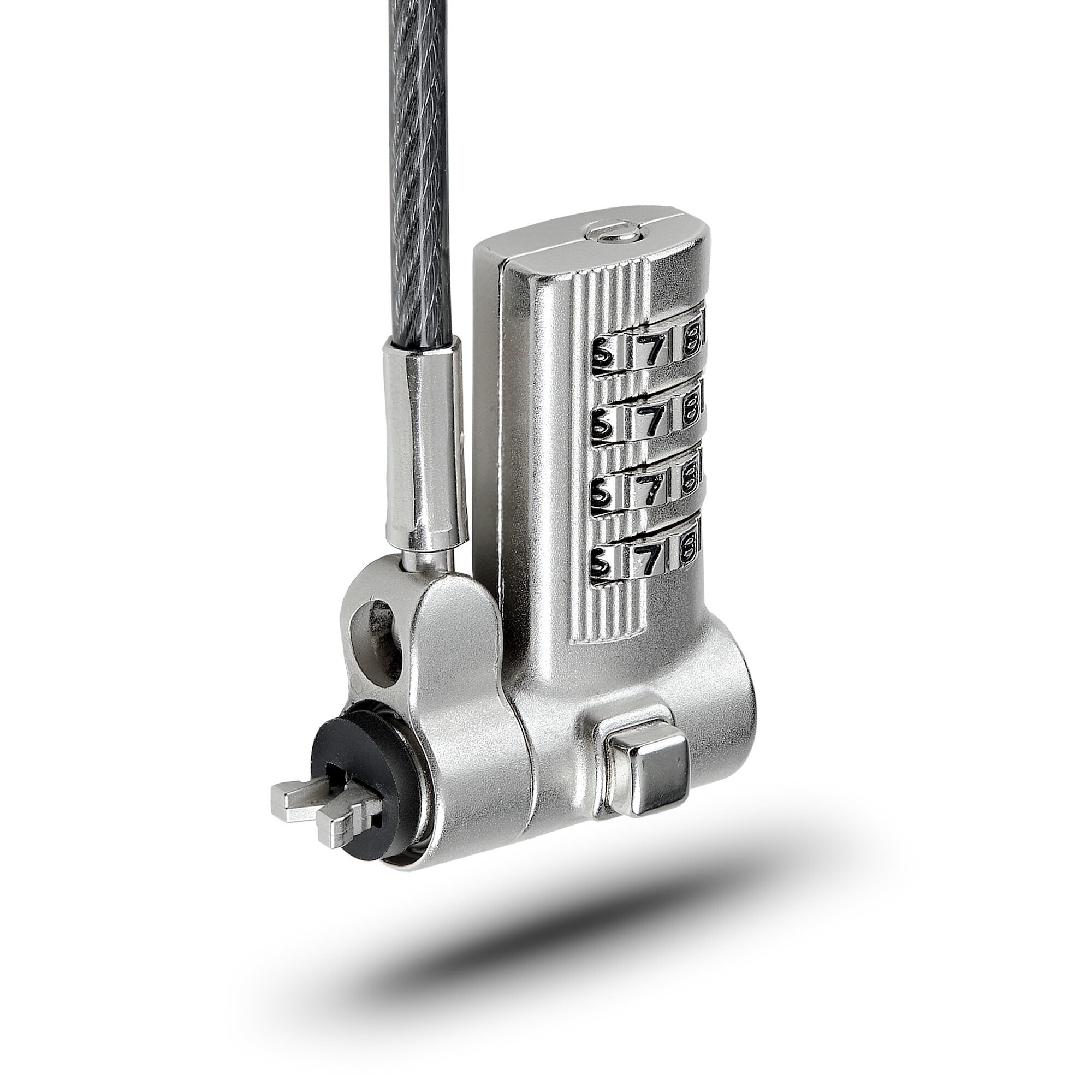 The keyless cable lock allows you to set a personalized combination code, offering up to 10,000 combinations for increased security. The lock can withstand a pull force of 202 lb (91.6 kg) for K-slot, 164.4 lb (74.6 kg) for Nano, and 110.2 lb (50 kg) for Noble Wedge®; ensuring your computer or other devices remains safe from theft.