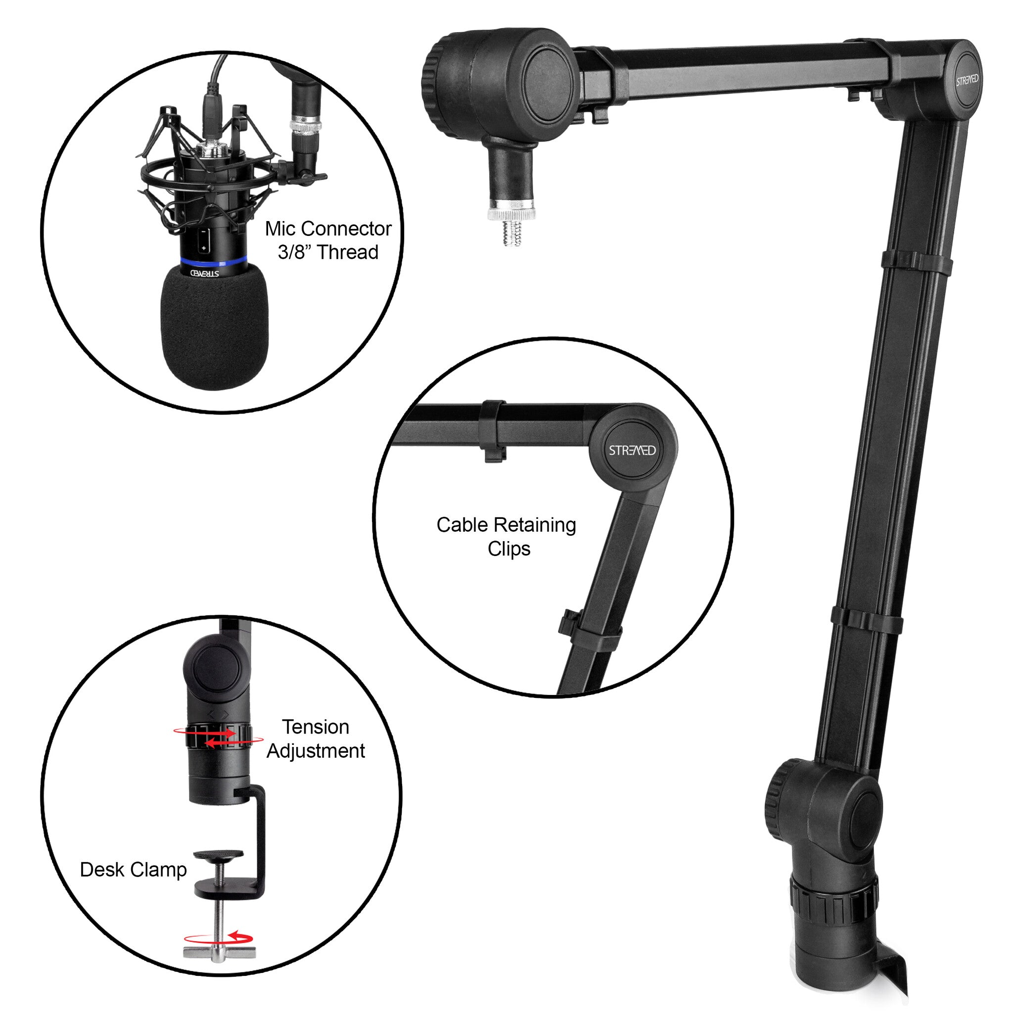 - The STRMD microphone stand is a studio-grade boom arm that is durable in construction sleek in design and silent in operation It has a sturdy desktop C-clamp design, enclosed aluminum body, and internal springs that provide tension
