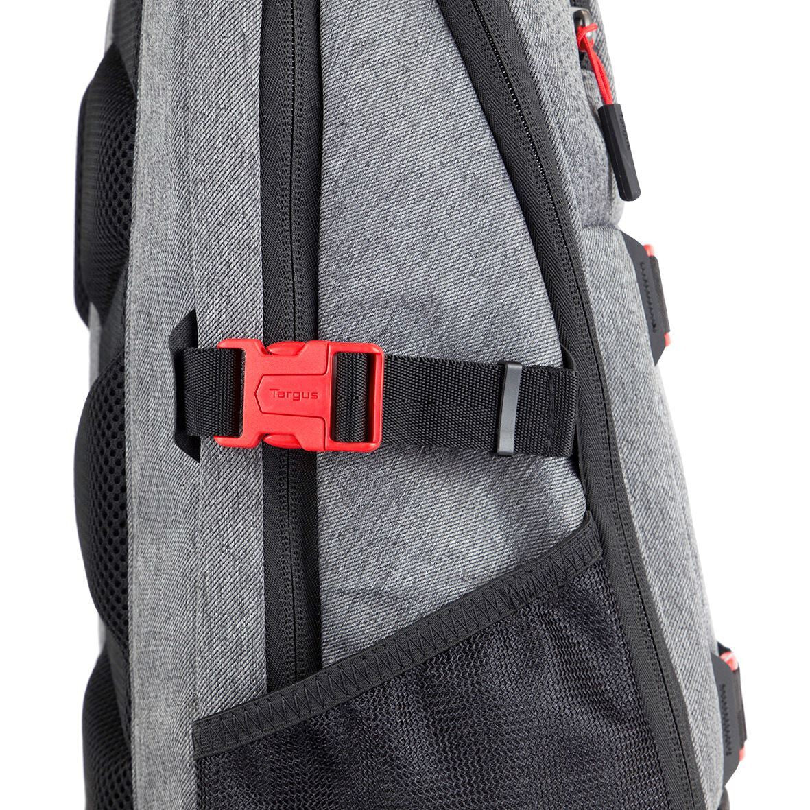 Targus Urban Explorer Laptop Backpack is your go-to bag Monday through Sunday. The outdoor inspired design features a padded laptop sleeve and room for a tablet, phone, accessories and personal belongings, whether commuting to work or away for the weekend the water repellent material ensures your belongings are protected against the weather. Our unique AIR X FLOW back padding boosts airflow to keep you comfortable and cool. Ideal for cyclists with compression straps which can be tightened to maintain a slim profile and reflective panels help you stay visible in the dark, a discreet whistle on the chest strap also means you can call attention to yourself if you need to.
