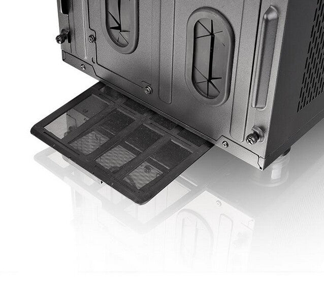 Featuring a width of 250mm, the Core X71’s unparalleled cooling ability offers fan brackets with various mounting points to support any type of gaming system that can be accommodated, including DIY/AIO liquid-cooling systems and air-cooling units. Users can install up to 480mm radiator at the front and a 360mm radiator on each side in the lower chamber. Additionally, the Core X71 comes with two 140mm Riing Blue fans at front and a 140mm fan at the rear to optimize system ventilation.