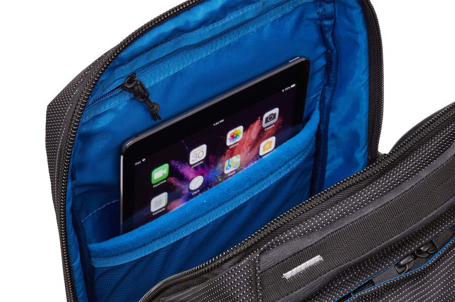 - Organize small electronics and accessories in the front panel with slip pockets, elastic loops, a zippered mesh pocket and the PowerPocket cord management system for charging on the go