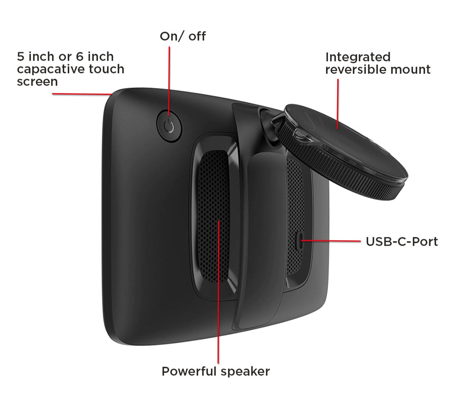 Follow your route on a high-resolution 5" or 6" touchscreen for safer drives, easily hearing every cue thanks to a powerful speaker.