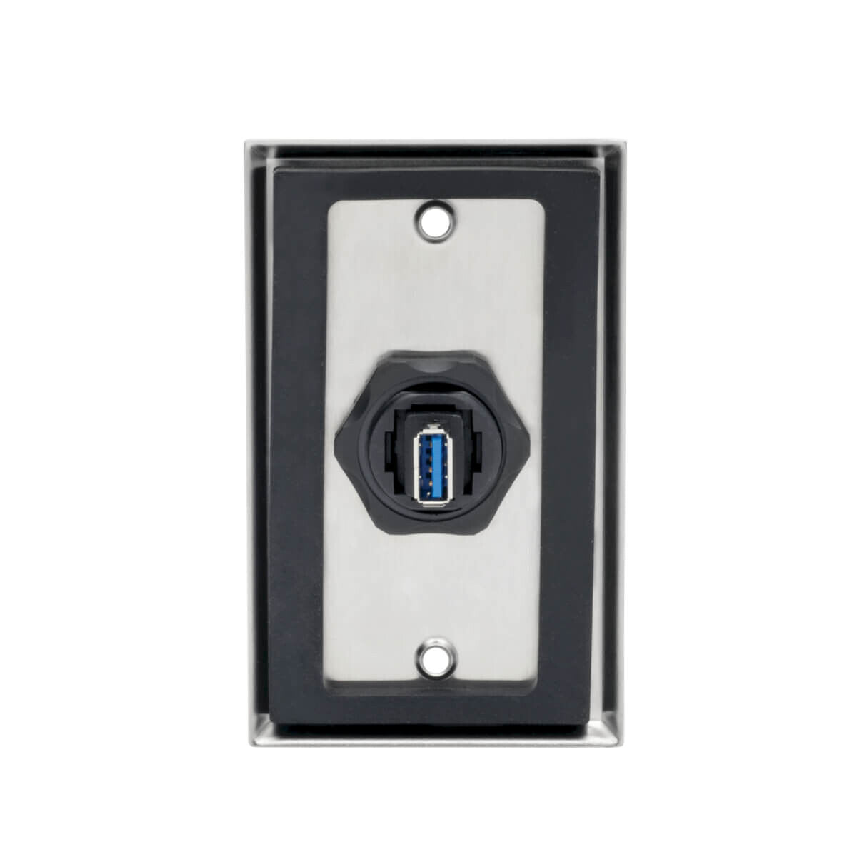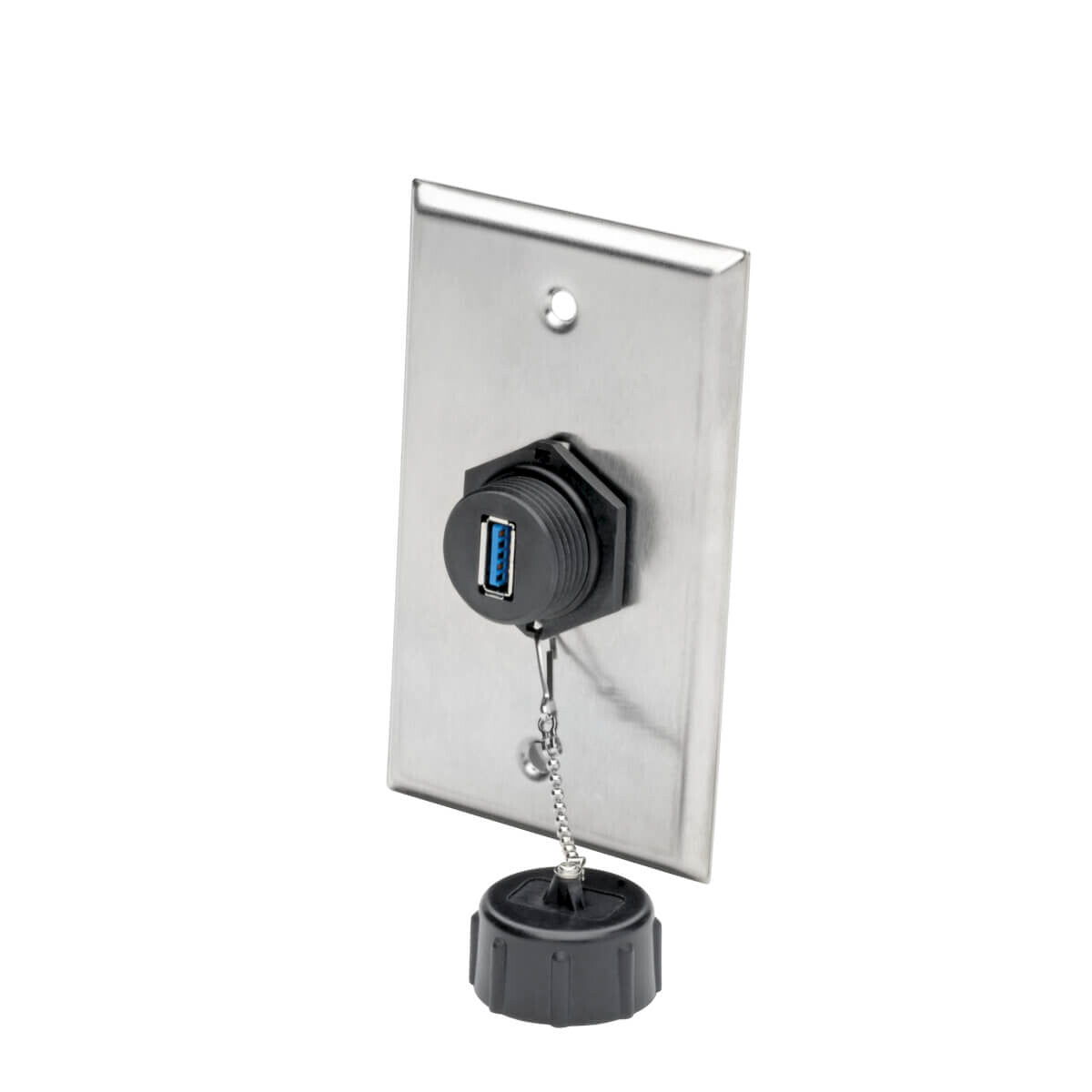 The IP68 rating means the USB3 coupler is not only 100% protected against dust, but also able to endure immersion in 1.5 meterS of water for up to 60 minutes with no damage or decline in performance, making the coupler ideal for basement applications. For applications that require IP68 protection, use the coupler with a N206-SB01-IND surface-mount box and U325-Series USB 3.0 cables. If only IP44 protection against splashing water from all directions is required, pair the coupler with a N206-FP01-IND, N206-FP02-IND or N206-FP04-IND wall plate and the U325-Series cables.