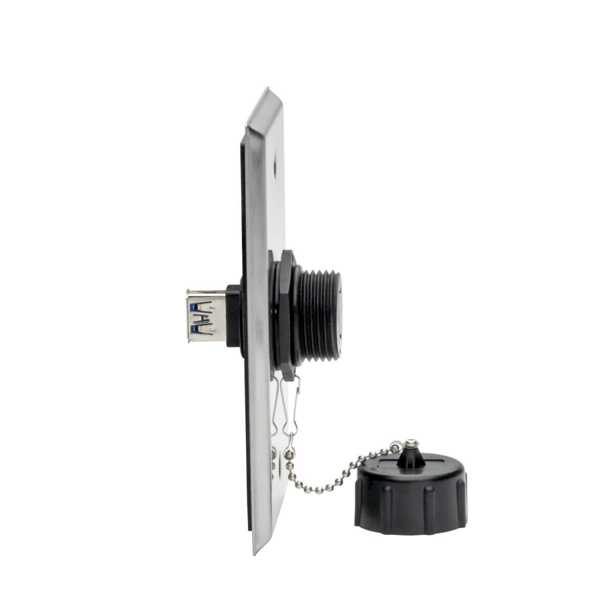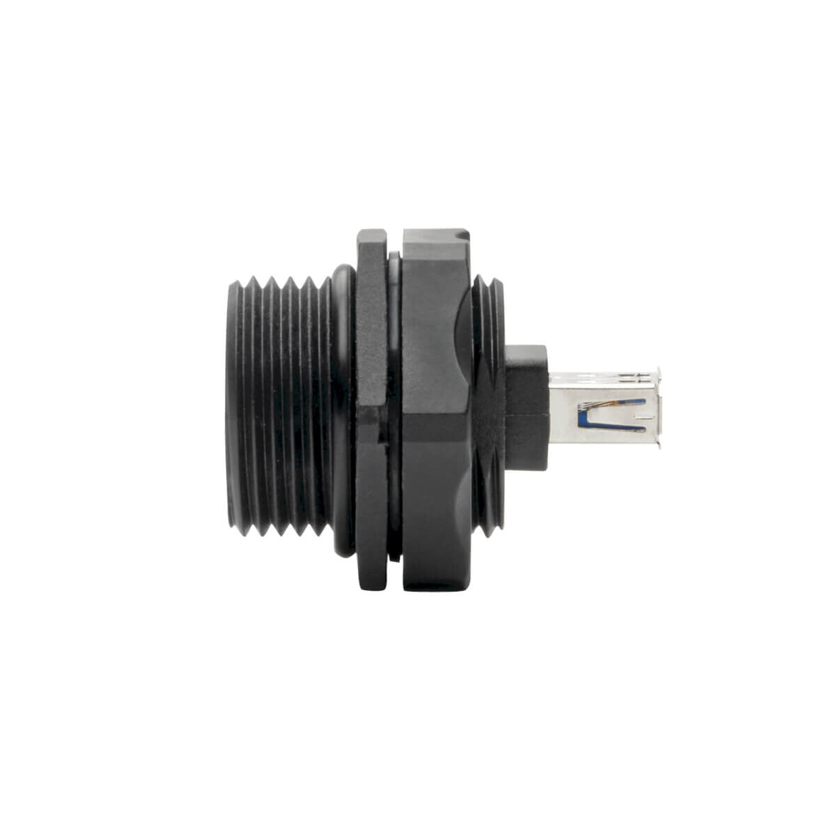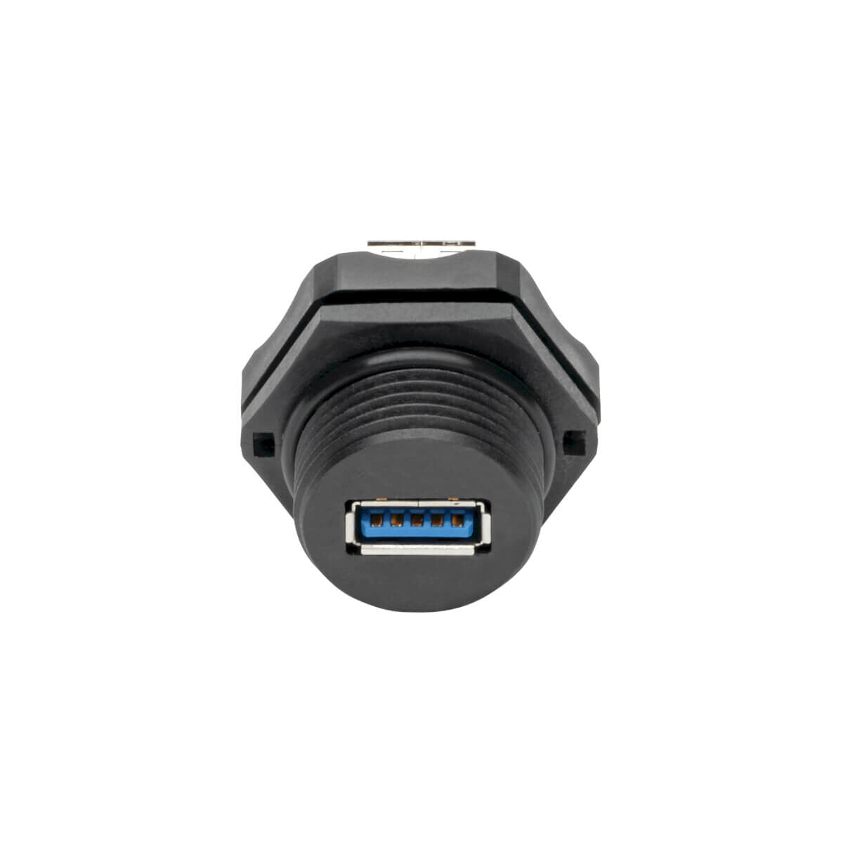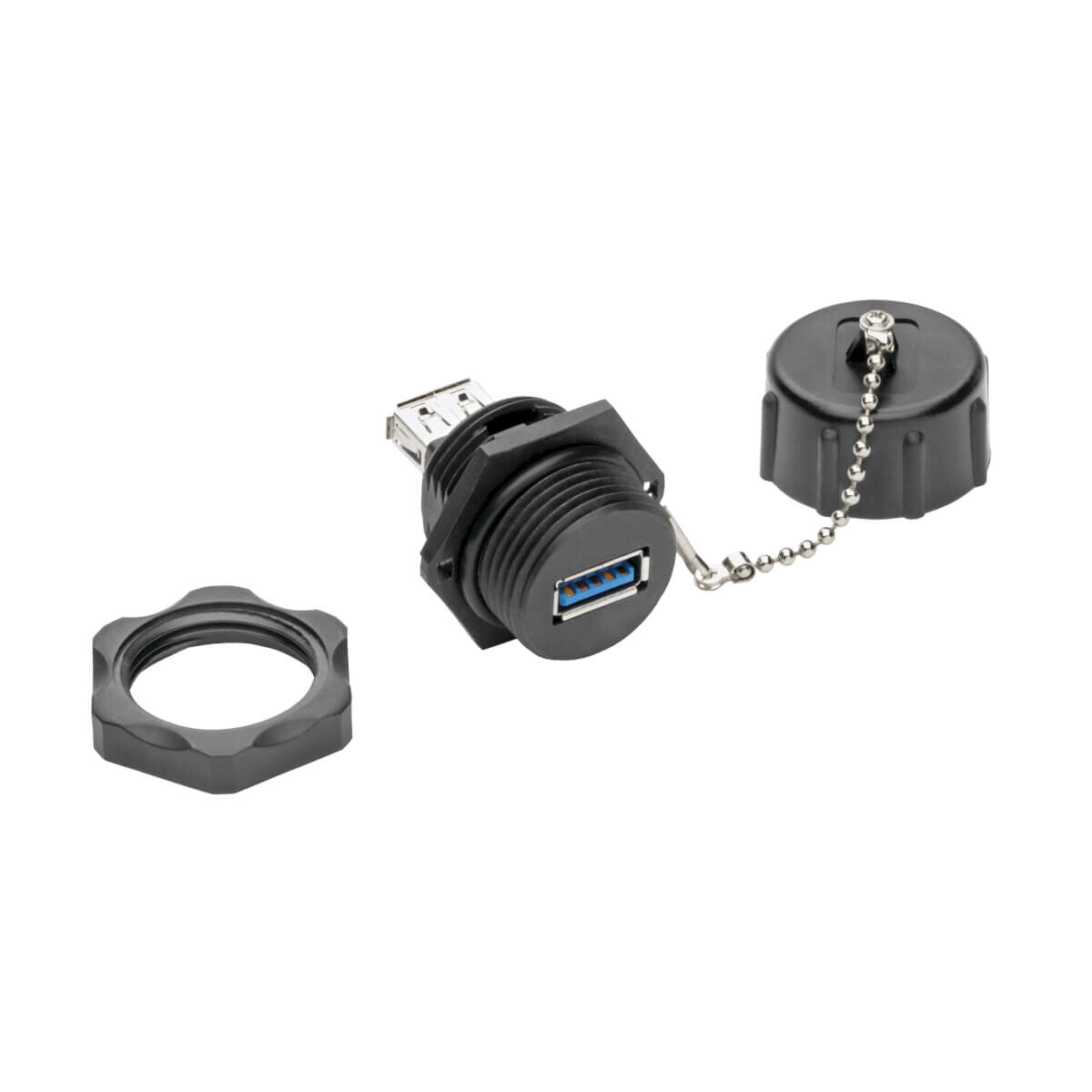 This USB 3 coupler is ideal for connecting industrial-grade USB-A cables in outdoor applications and other areas where protection from harsh elements is essential, such as factories and warehouses. The industrial bulkhead adapter and two female USB-A connectors are designed to withstand dust, debris and moisture that could threaten your IT infrastructure. An included dust cap protects the connectors when they aren’t in use.