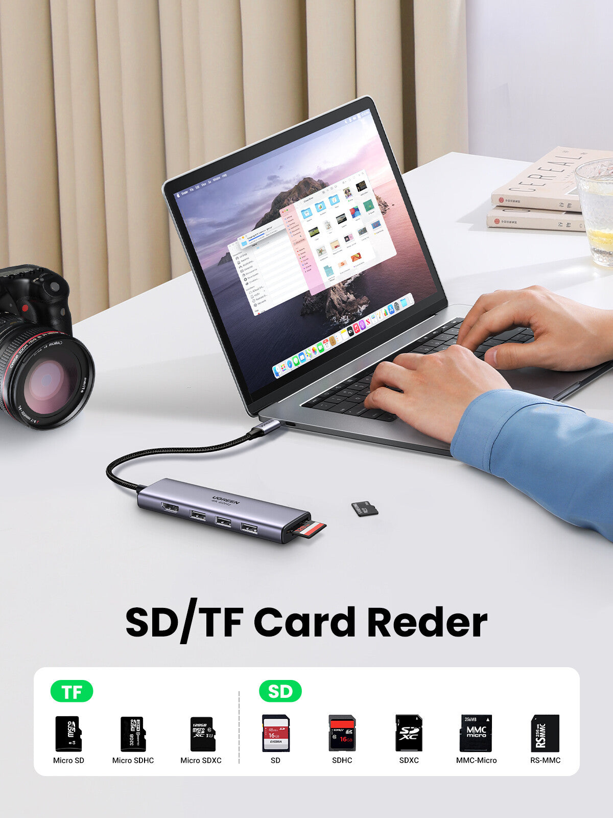 UGREEN USB C to USB Adapter has a 4K@60Hz USB C to HDMI output port, 3 USB 3.0 Ports, and micro SD and TF card reader. Ideal for work in the office, at home, or on the go! Plug in everything you need for your laptop, tablet or macbook,. This USB C dongle is compatible with most USB C devices like MacBook Pro, MacBook Air, MacBook M1/M2, iMac, iPad Pro, Chromebook, Surface, Dell, HP, etc.