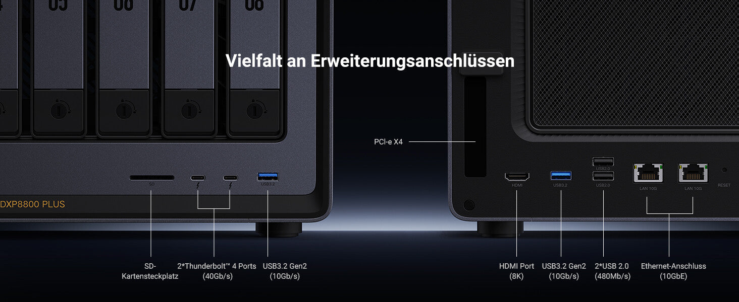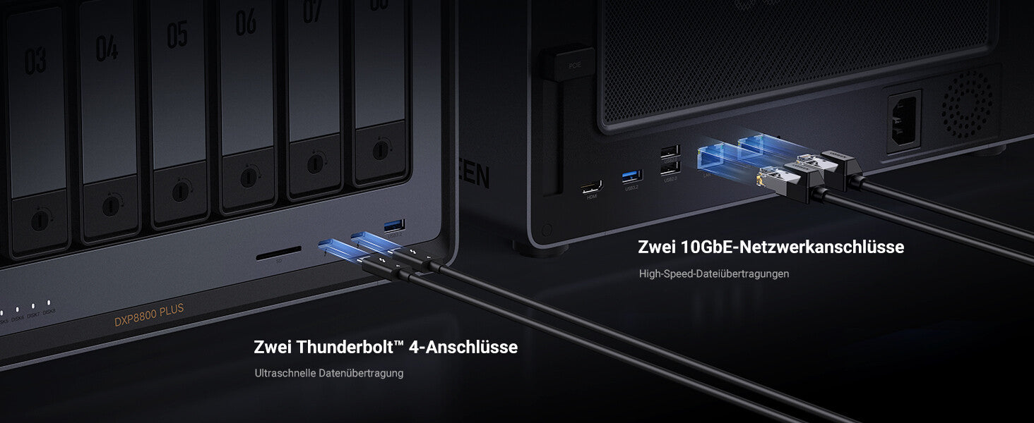 .Dual 10GbE Network Ports: Two 10GbE high-speed network ports that can be aggregated into 20G bandwidth for download speeds of up to 2500MB/s. Transfer large files smoothly like a breeze. Load between the two port links can be dynamically adjusted and balanced to improve transmission efficiency.