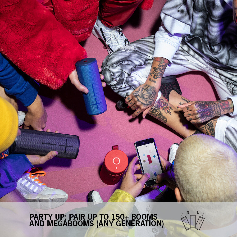 Ultimate Ears BOOM 3 is a super-portable wireless speaker built for adventure. It rocks immersive 360° sound with deep bass, all carefully balanced so you can hear every note. But BOOM 3 also hangs tough. It’s seriously waterproof, dustproof, and drop proof which means you can bring vibes anywhere. From the desert festival to the pool party and everywhere in between. Plus BOOM 3 features the all-new Magic Button so you can play, pause and skip songs directly on the speaker. And it is wrapped in a stunning, high-performance fabric that shimmers. The ultimate go-anywhere speaker just got more ultimate.