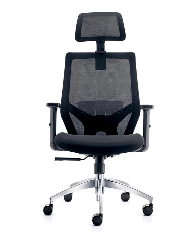 The special feature of this armchair lies in its backrest: it is made of breathable fabric and has a curved shape, an essential feature that makes all the difference from an ergonomic point of view. Thanks to this, your back will benefit from optimal support and your body posture will be optimized. The chair has an advanced tilt mechanism adjustable from 90 ° to 135 ° and a rocking system. This makes it possible to tilt the chair and leave it in the position that best suits your needs. The handling of the chair is simple and intuitive. The armrests are adjustable in height. They have rubber pads to ensure ergonomics and safety. Thanks to its perfectly dimensioned frame, the user will be able to adopt an adequate posture which will allow him to work in the most efficient way. Its mesh headrest is adjustable in height. It is the ideal supplement to protect the cervicals, which is essential for continuous use.