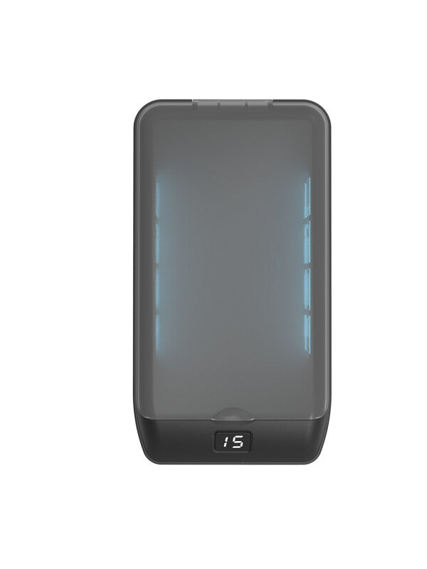 Built-in Wireless Charger - One button starts the Wireless charging cycle. While you wait for your sanitization cycle to be complete you can charge your smartphone on top of the Box which supplies up to 10W wireless charging abilities for devices that support the wireless charging function