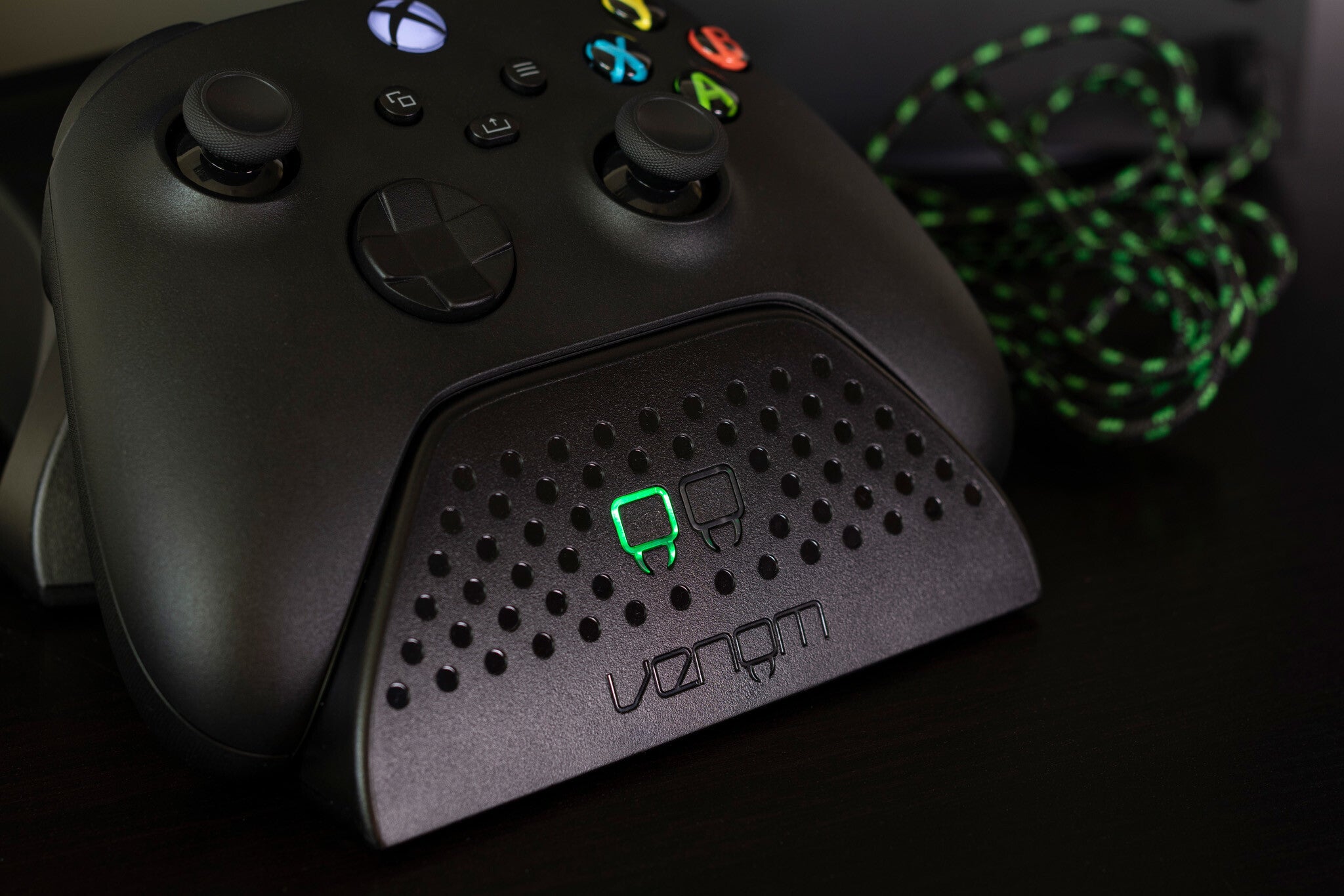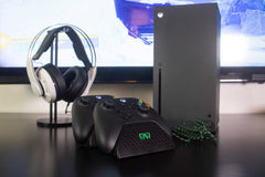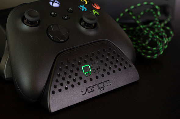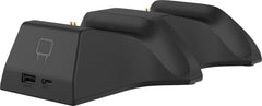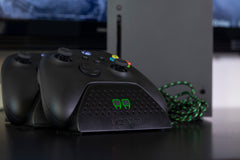 Dock, store and charge your Xbox Series S controllers and ensure your game pad is ready to play as soon as you are. Includes 2 x 850Mah rechargeable battery packs that simply Clip into your controller, removing the need to be constantly spending money on expensive disposable batteries. Once in place, simply drop your controllers on to the stylish charging Dock and the innovative rear contacts will connect with the charging points automatically to replenish the power in your controller. The dock can hold and charge up to 2 controllers at a time meaning you will never again be left stranded with no power mid-game! The dock will also keep your controllers charging when in standby mode.
