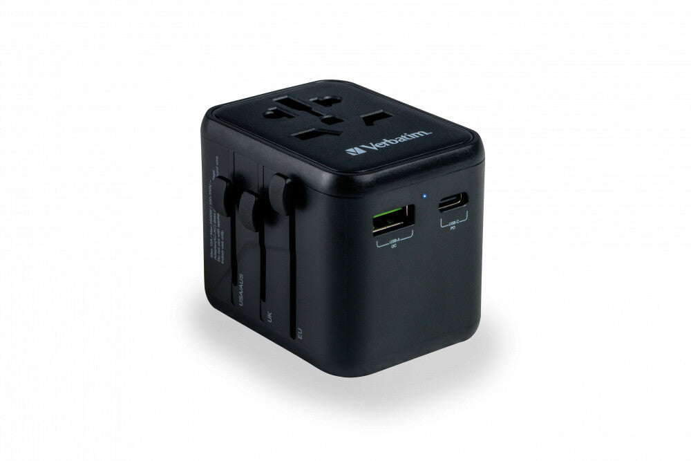 The Verbatim Universal Travel Adapter can be used in more than 180 countries – take it everywhere with you and never be out of power. This world-to-world multi plug will allow you to connect to any local power supply around the world and recharge your power-hungry devices, like laptops and camera batteries. The USB-C and USB-A ports on the bottom can charge all your USB devices including smartphones, Bluetooth speakers, tablets, power banks, and Kindles.