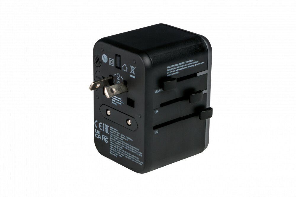 The Verbatim Universal Travel Adapter can be used in more than 180 countries – take it everywhere with you and never be out of power. This world-to-world multi plug will allow you to connect to any local power supply around the world and recharge your power-hungry devices, like laptops and camera batteries. The USB-C and USB-A ports on the bottom can charge all your USB devices including smartphones, Bluetooth speakers, tablets, power banks, and Kindles.