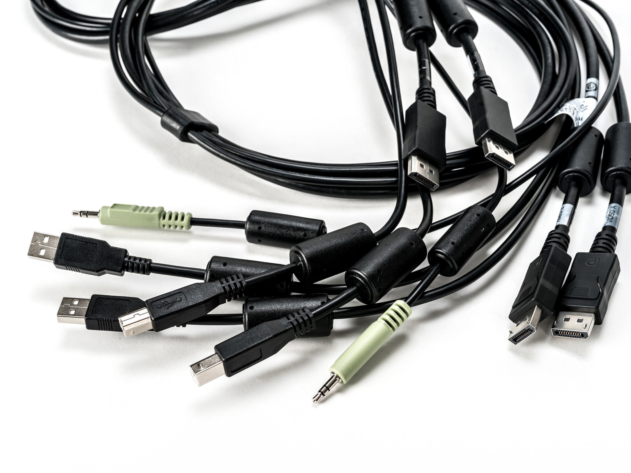 These all-in-one KVM cables are designed to deliver superb video quality and error-free transmission for your high-resolution applications. The shield and the structure provide the maximum in quality, performance, and reliability. They are great for workstations, test benches or anywhere tasking between computers is needed. Portable and easily installed, switching between computers is controlled by the push-button on top of the device.
