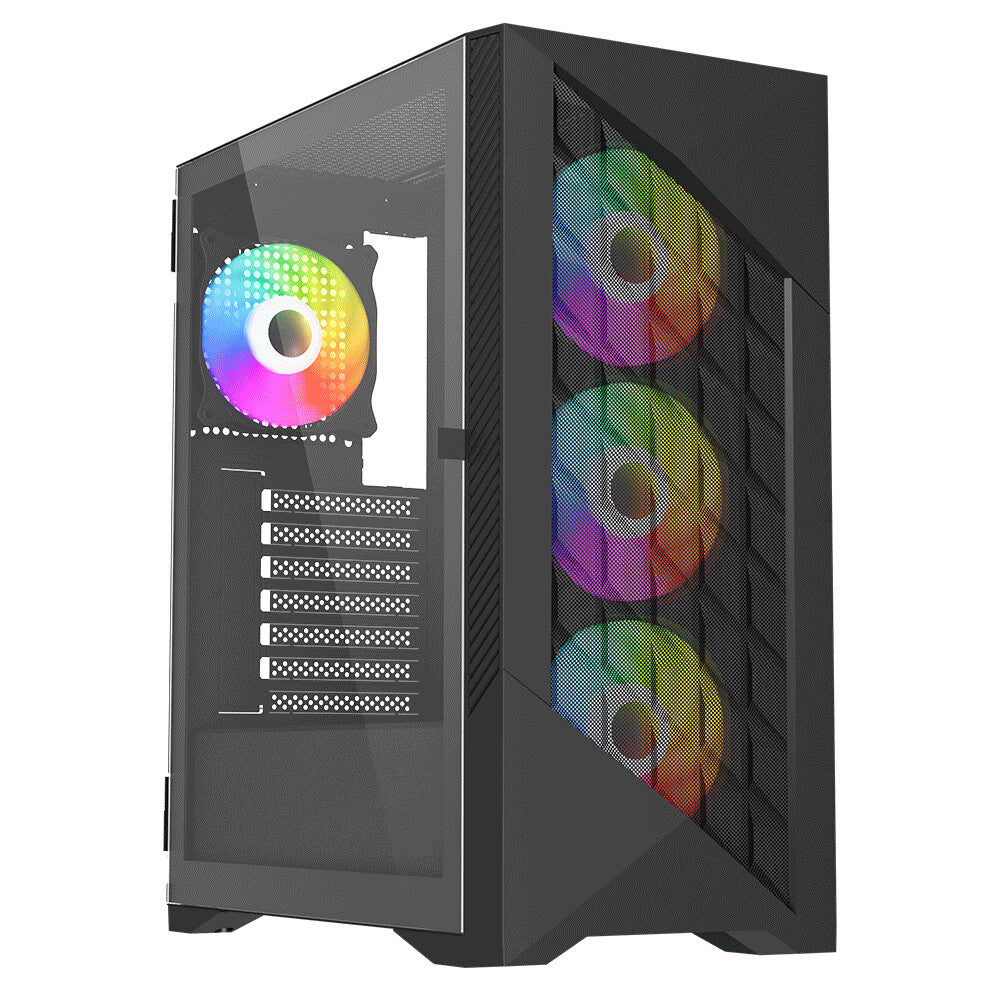 Vibrant ARGB Lighting Right Out of the Box: Instantly illuminate your build with four pre-installed ARGB fans – three front and one rear! These fans deliver dynamic color and are ready to sync with your ARGB motherboard for unified lighting control using the included 3-pin ARGB SYNC cable.