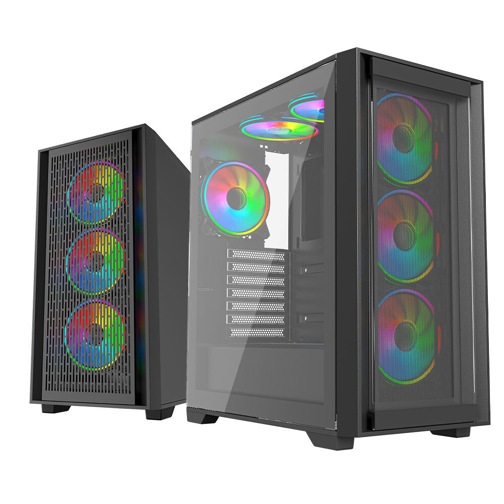 Designed around the ATX form factor, the Versa provides ample room for high-performance hardware while keeping airflow at the forefront. With a smart internal layout, vibrant lighting, and versatile cooling options, the Vida Versa is ready to house your next gaming build in style.