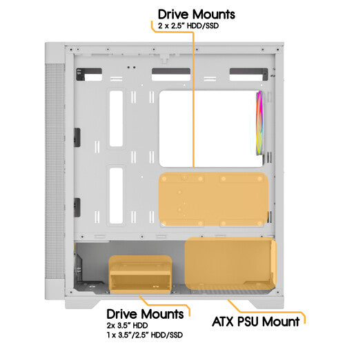 The Zephyr V2's front mesh bezel ensures optimal airflow, while the robust metal and tempered glass construction guarantees durability and a premium feel. Choose between the elegant black or pristine white finish to perfectly complement your setup.