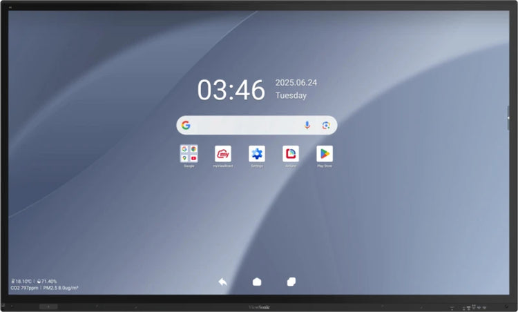 The interactive flat panel features a smart sensor with Person-in-Room detection, allowing the display to automatically wake or enter sleep mode based on user presence, helping reduce energy consumption without requiring IT intervention. It also monitors environmental factors such as temperature, humidity, and ambient light to support more comfortable and productive working and learning conditions.
