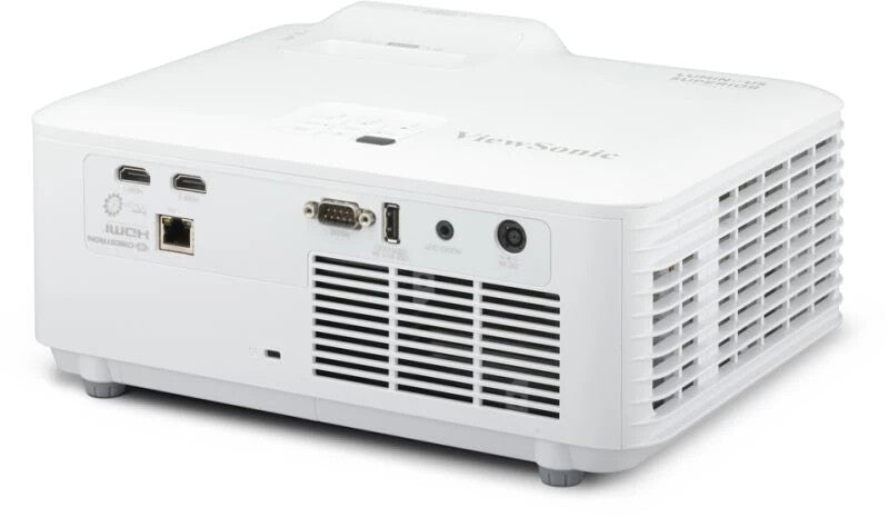 The LS630HD is part of ViewSonic’s Luminous Superior Series, a lamp-free projector lineup designed for commercial and educational environments. It delivers ultra-large projections up to 300” in sharp 1080p Full HD resolution, leveraging high native contrast from a 0.65” DMD chip with DLP technology. Powered by 3rd-generation laser phosphor technology, it offers 4,000 ANSI Lumens brightness and a remarkable lifespan of up to 30,000 hours. Its lamp-free design ensures eco-friendliness and cost-efficiency by reducing power consumption. With features like a 1.3x optical zoom, H/V keystone correction, and 360° projection, the LS630HD supports flexible installation. Centralized LAN control simplifies management, making it an excellent choice for boardrooms, lecture halls, and public spaces.