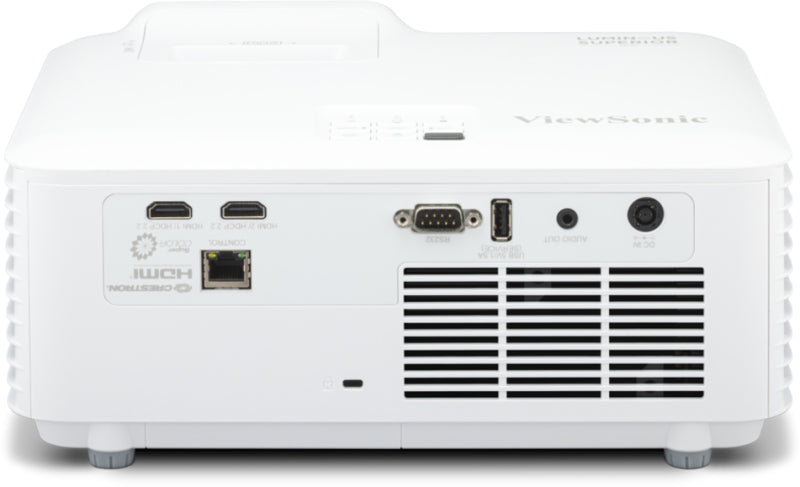The LS401HD is part of ViewSonic’s Luminous Superior Series, a lamp-free projector lineup designed for commercial and educational environments. It delivers ultra-large projections up to 300” in sharp 1080p Full HD resolution, leveraging high native contrast from a 0.65” DMD chip with DLP technology. Powered by 3rd-generation laser phosphor technology, it offers 4,000 ANSI Lumens brightness and a remarkable lifespan of up to 30,000 hours. Its lamp-free design ensures eco-friendliness and cost-efficiency by reducing power consumption. With features like a 1.3x optical zoom, H/V keystone correction, and 360° projection, the LS401HD supports flexible installation. Centralized LAN control simplifies management, making it an excellent choice for boardrooms, lecture halls, and public spaces.
