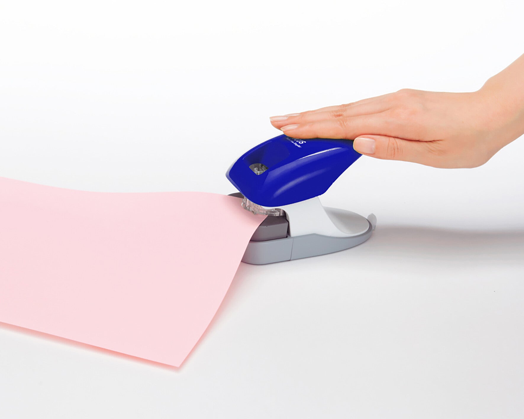Staples up to ten sheets of paper (80 g/sqm) together easily and can also be used - thanks to the integrated distant holder - for 2-hole punch and storage of A4 documents. With power assist mechanism for effortless stapling - completely without staples. Easy positioning for fasting due to viewing window. Also suitable for 2-hole puch of A4 formats. Paper shredder safe. Cost efficient - without consumables. Casing made from recycled plastic material.
