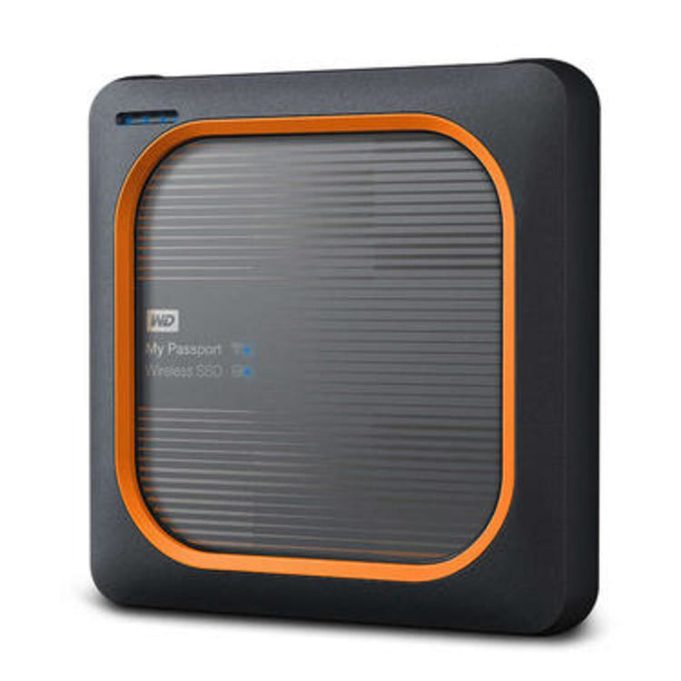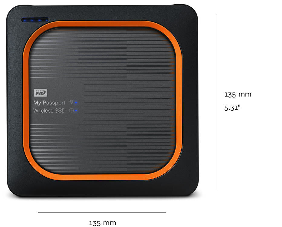 The My Passport™ Wireless SSD is an all in one portable drive that helps preserve photos and videos captured on your cameras and drones. The one touch copy button lets you back up photos and videos with the built in SD™ card reader or the integrated USB port without a laptop or software.