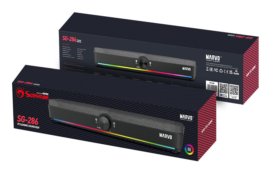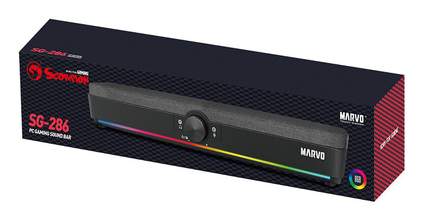 Enhance your visual experience as well with the built-in 7-color RGB lighting on the Marvo Scorpion SG-286. Transform your space with dynamic lighting effects that sync with your audio, creating a captivating ambiance for your entertainment sessions. Whether you're hosting a movie night or gaming with friends, the RGB lighting adds a touch of excitement to your environment.
