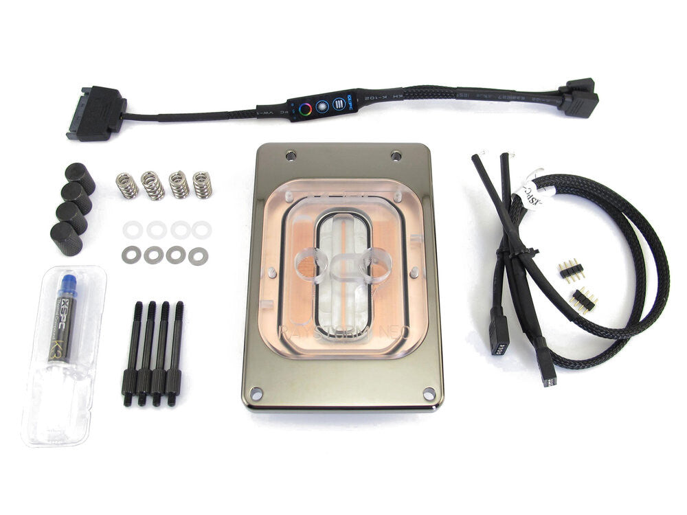 Each waterblock is carefully machined from pure copper and acrylic, while the hold down bracket is machined from solid aluminium. As with all XSPC products, no aluminium is used in the coolant flow path.