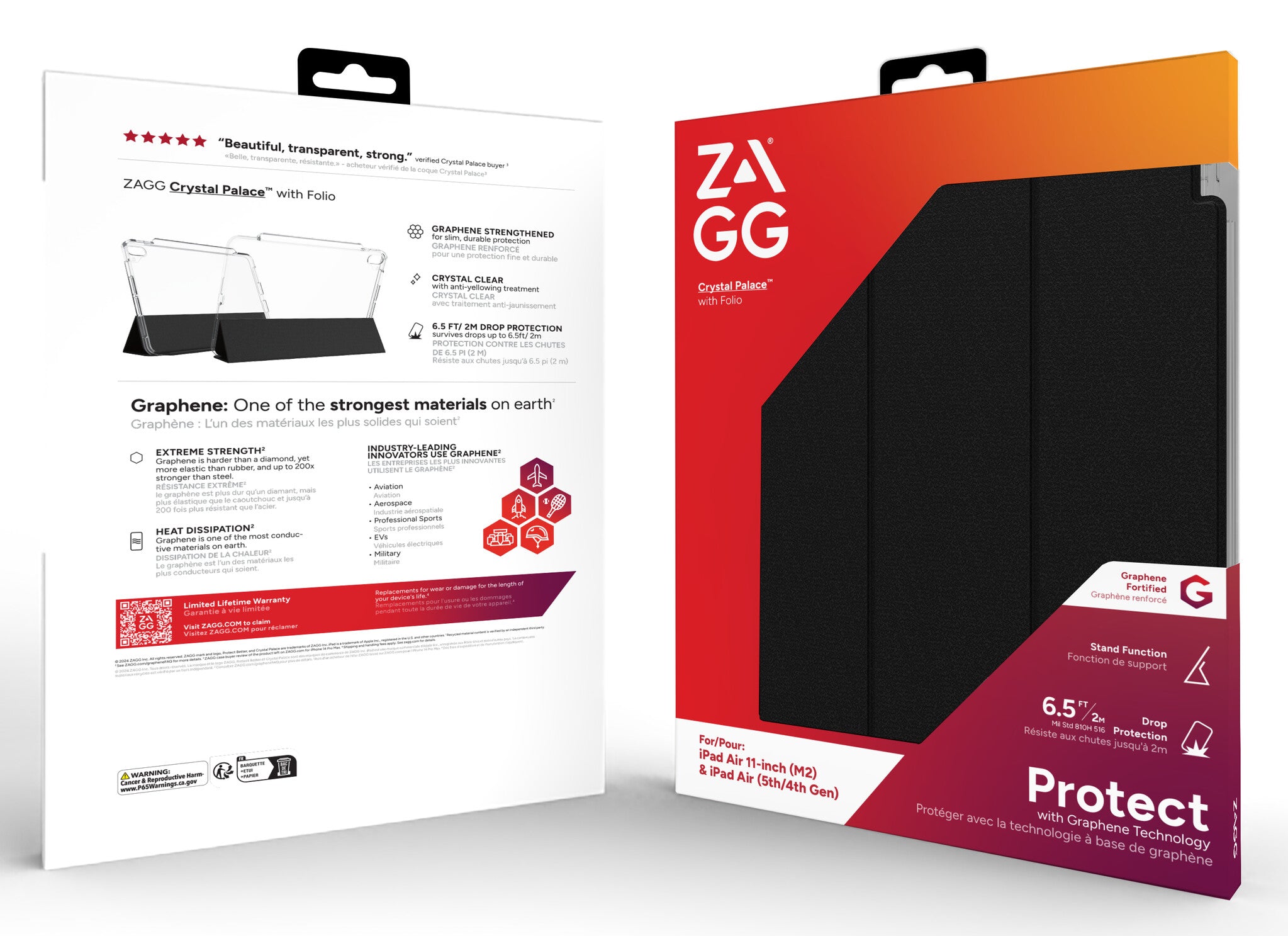 Crystal Palace with Folio shows off the sleek lines of your iPad while providing 6.5 feet of drop protection. Its anti-scratch, anti-yellowing features keep the case looking clean and pristine. The folio cover protects your screen when it’s not in use, and folds back to form a stand, perfect for watching videos, reading, or video chatting. Crystal Palace with Folio is made with graphene, one of the strongest materials in the world. Graphene is unbelievably thin, flexible, and heat conductive, so it preserves the slim, lightweight case design while reinforcing drop protection. Crystal Palace with Folio is made with up to 56% recycled content. So, the strong, sleek choice in case protection is also the responsible one. Protect your iPad from everyday hazards, as well as the contents of your bag, and feel confident taking it with you everywhere.