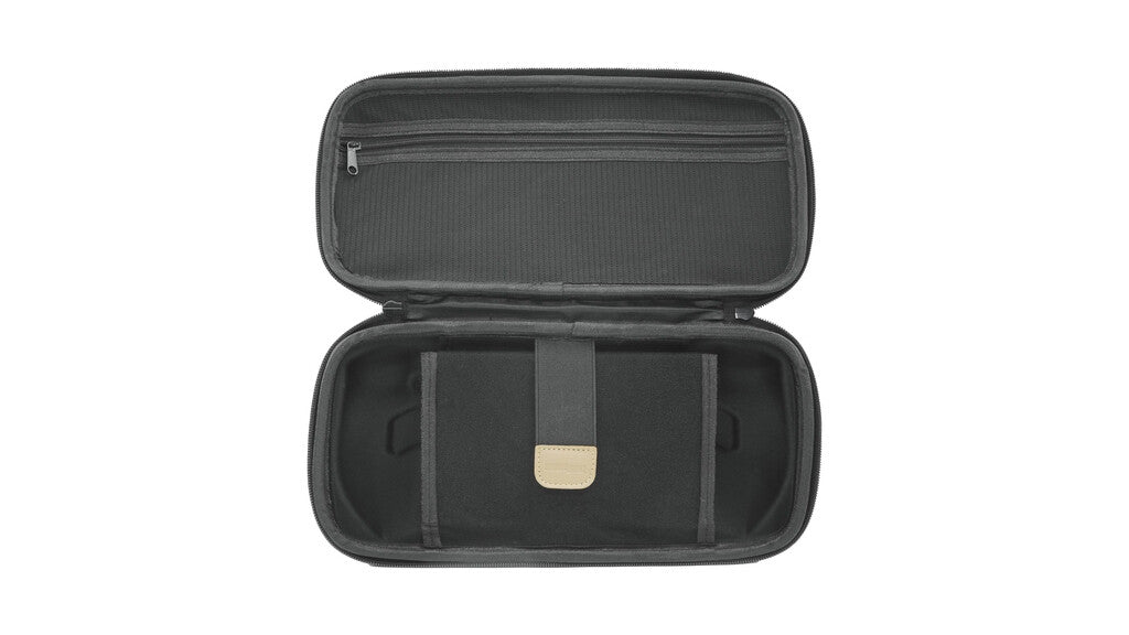 The ZOTAC GAMING ZONE Carrying case is designed specifically for the ZONE Handheld Gaming Console, with a protective water and scratch-resistant hardshell and additional compartments for storing additional items and a built-in stand to keep devices upright. Includes a lanyard with two quick-release buttons.